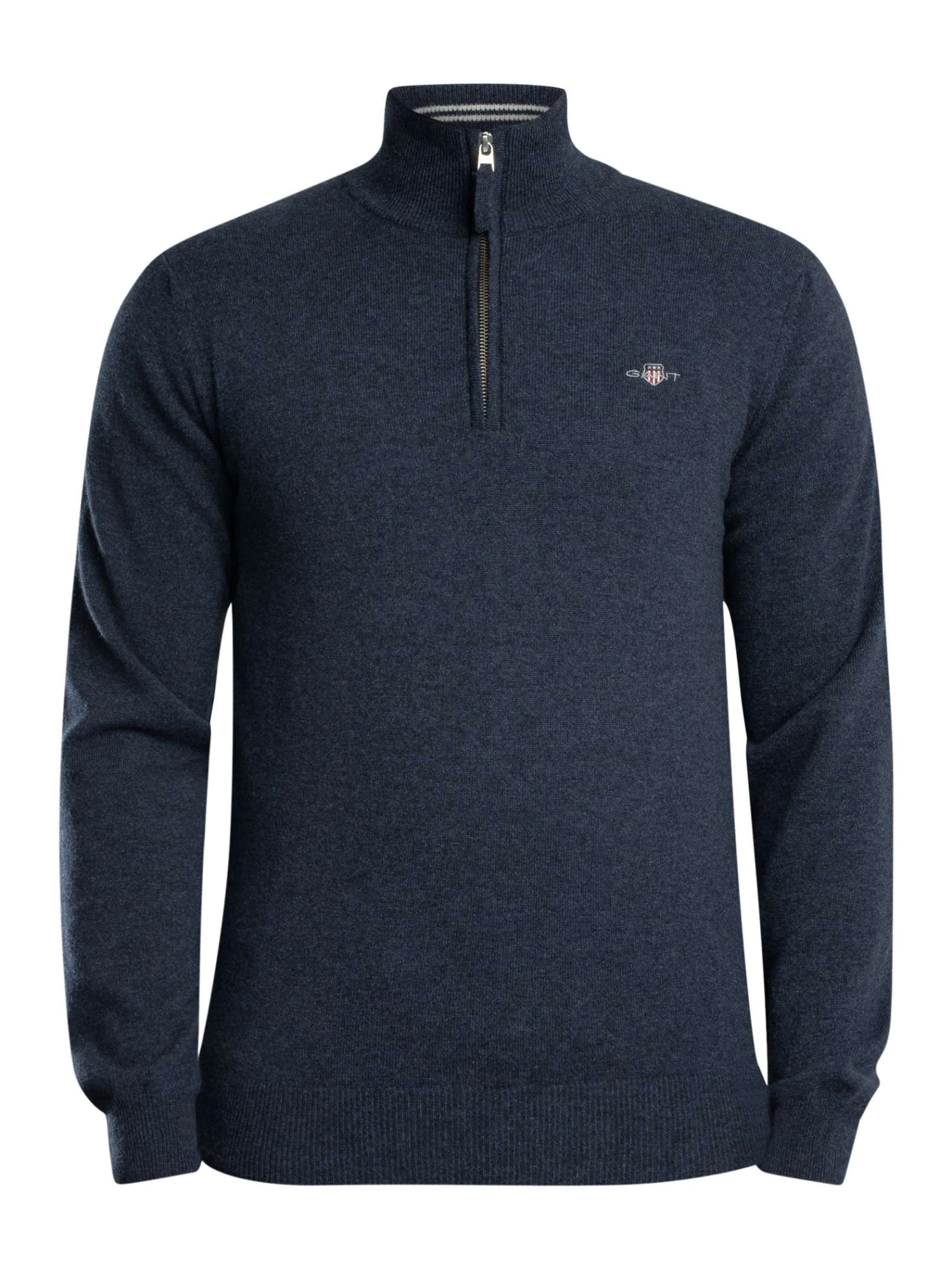 Built to be worn on repeat, the GANT Superfine Lambswool Half Zip Knit in dark navy melange focuses on subtle detailing and dependable comfort. GANT identity appears via the embroidered logo on chest, while the branded zip adds a premium note to the half-zip neckline. The fit remains tidy thanks to elasticated cuffs and hem, and the elasticated collar rests softly for day-long ease. Superfine lambswool regulates temperature naturally, making this GANT staple a clever mid-layer from autumn to spring. Pair with a crisp shirt or tee for effortless, adaptable style.
