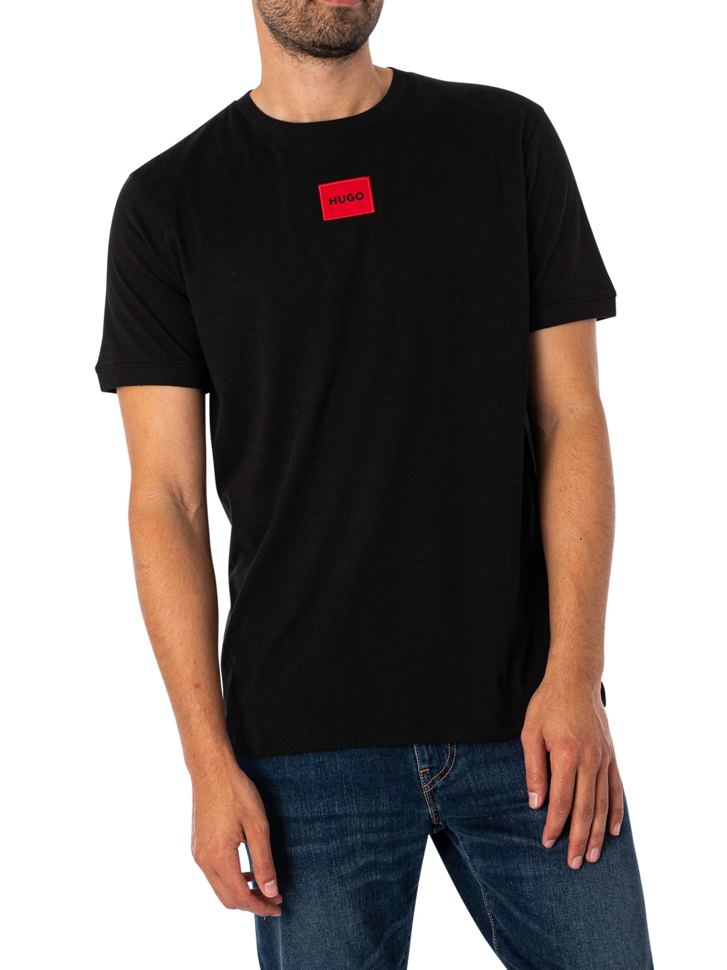 Embrace casual sophistication with the HUGO Diragolino212 T-Shirt in Black. This T-shirt features a distinctive logo badge on the front, adding a subtle yet stylish element to your outfit. The straight hem provides a sleek and contemporary fit, perfect for any setting. Crafted from premium materials, the Diragolino212 T-Shirt ensures lasting comfort and style. Ideal for both casual and semi-formal occasions, this versatile T-shirt is a must-have for your collection, reflecting HUGO’s dedication to exceptional design.